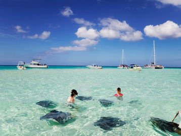 The Cayman Islands snorkel stops of Stingray City, Coral Gardens,Starfish Point and Bioluminescent Bay offer a classic marine tour experience, allowing visitors to interact with friendly stingrays, snorkel over colorful coral reefs filled with tropical fish, find starfish in shallow clear water at a serene beach, and